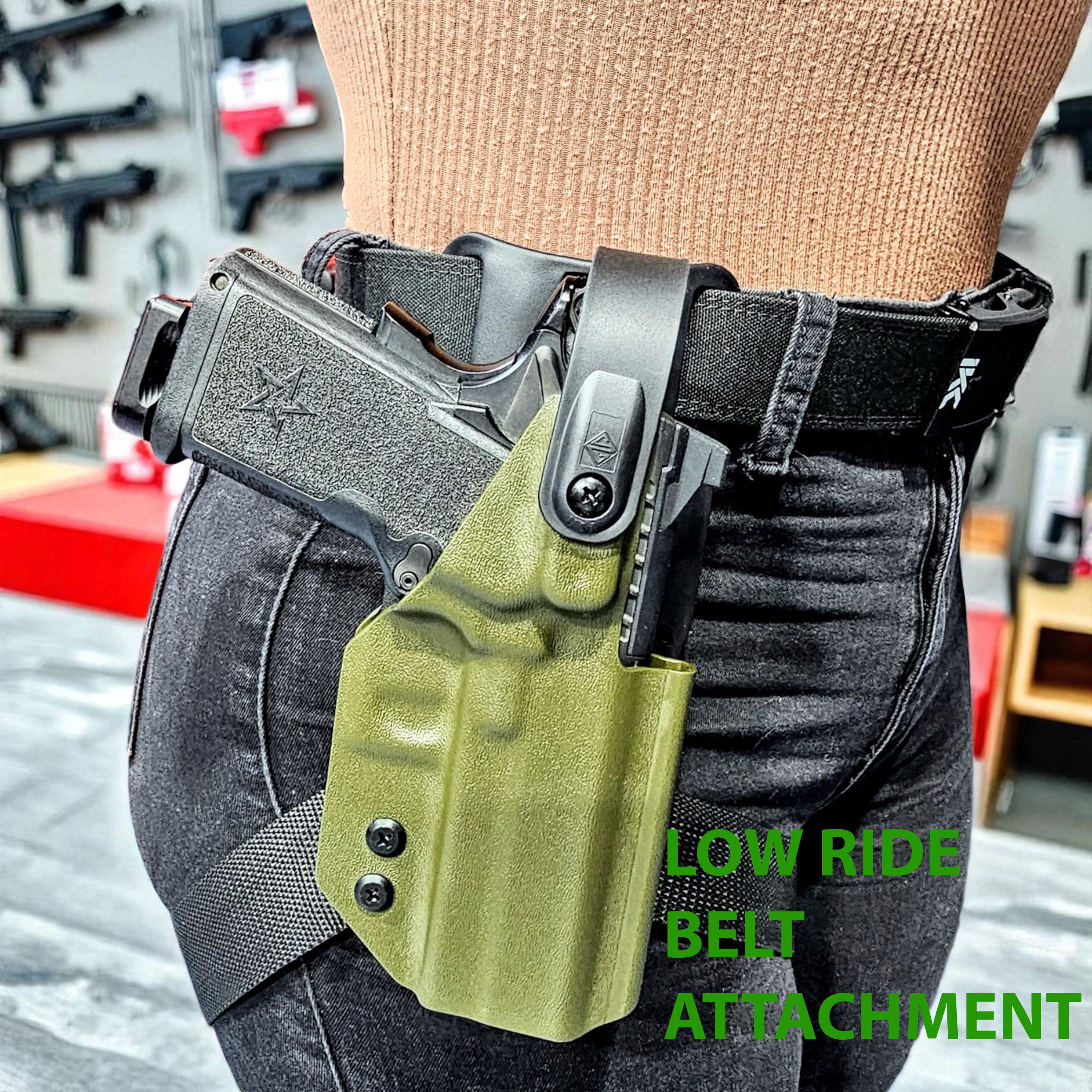 Level 2 retention OWB Range Kydex® holster for enhanced security.